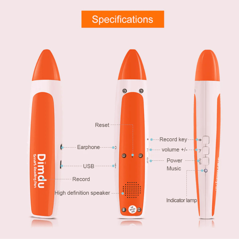 The Dimdu Smart Reading Pen is designed for children aged 3 years and above, making it a perfect tool for fostering literacy skills and curiosity in a fun and interactive way.It is not recommended for children under 3 years old.